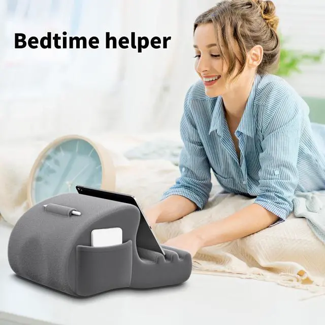 ^^ Deepened Grooves: The tablet pillow stand has widened and deepened fixing grooves, which can well fix your device so that it won't slip. The base of the tablet stand is made of high-quality high elastic sponge, not easy to deform. The surface is very soft plush polyester, which can be removed and washed to keep the tablet pillow holder pillowcase clean ^^ Two