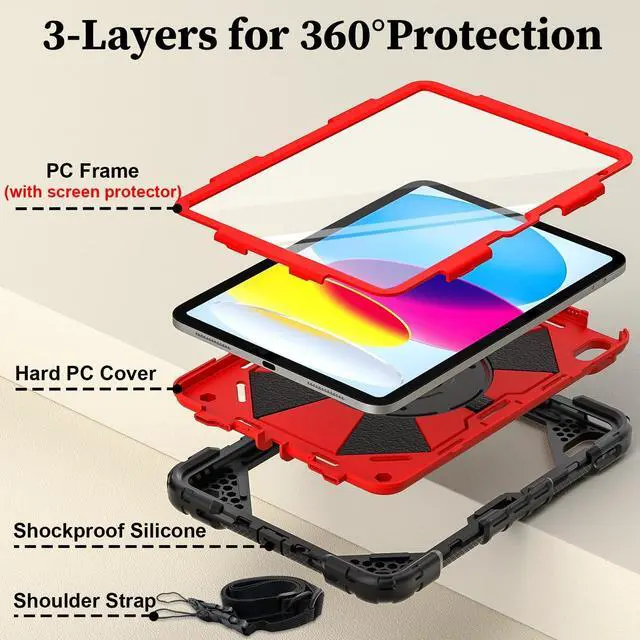 Layers Construction: 3 Layers structure of iPad 10th generation case made of Hard PC and Flexible Silicone, Military Grade Material provides tablet comprehensive protection. 4-5mm convex lip of the lens for Camera Len, Anti-Scratch, Anti-Fingerprint, Shock-Resistant ^^ 360