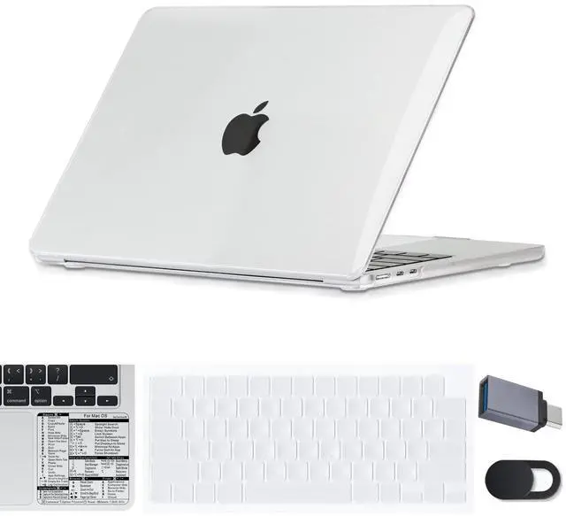 Bundle Accessories: Plastic Hard Shell Laptop Protective Case, Keyboard Cover Skin, Webcam Camera Cover Slide, Mac OS Keyboard Shortcut Sticker, Type C to USB 3.0 OTG Adapter