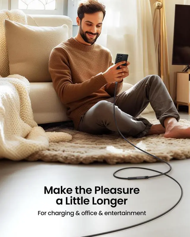 240W Ultra Charging Speed Our extension cord with USB C supports 240W 48V/5A fast charging. Suitable for 140W/100W/65W/30W USB C port cable/charger. Quickly charge iPhone 15 to 90% and macbook pro to 88% in 35 minutes,Faster then 60W/100W. Extend the distance, extend your pleasure and make the living/office area more tidy.