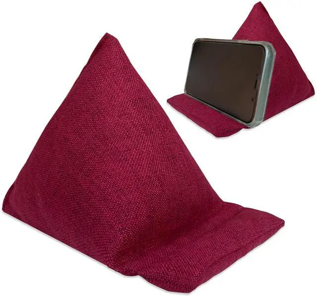 These soft fabric phone stands are well made and nice in size, not too bulky. The front roll is tightly packed and holds the phone well without obscuring the screen.