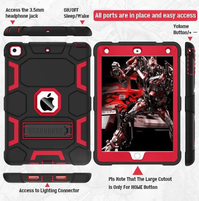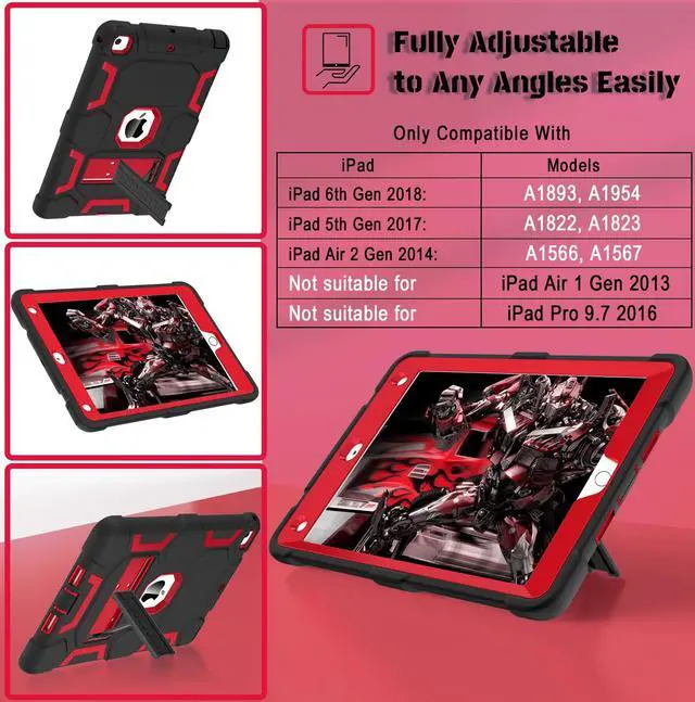 Compatible ModelsProof Case for iPad 6th/5th Generation 9.7 inch (A1893/ A1954/ A1822/ A1823) 2018/2017 Release, iPad Air 2 2014 Release(A1566/ A1567), [No Screen Protector] DO NOT fit other iPad. ^^ Exclusive Design The appearance design makes you associate with the hero of animation. Fans can imagine heroic battling villains in a fight for the fate of the world with this ipad 6th generation case figure. Muscle mass design makes it more protective and easy to hold. ^^ Convenient KickstandiPad 5th generation case built-in sturdy kickstand, extremely convenient and easy to push out and back in.