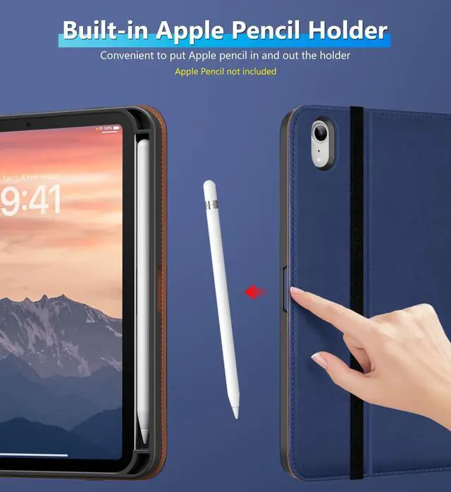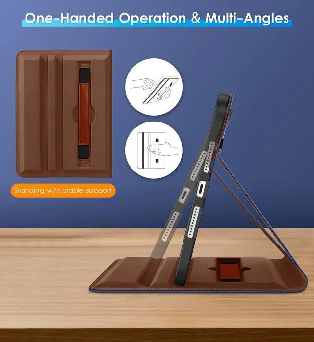 Inch (Model number: A2567/2568/2569). Not compatible with any other iPad model ^^ Internal embedded 360-degree rotating design, flexible rotation to any angle for comfortable watching movies or typing. Built-in leather hand strap (one-handed operation) ^^ Built-in pencil holder, Pencil holder securely carries and protects Apple Pencil wherever you go.