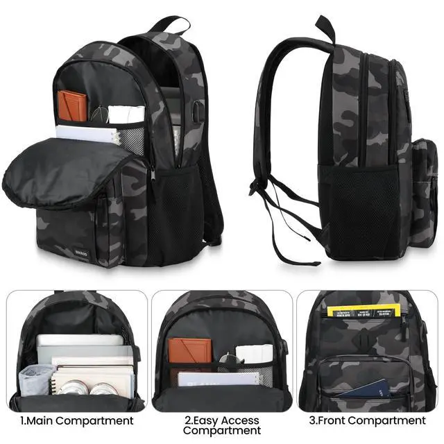 USB PORT DESIGN: With built in USB charger outside and built in charging cable inside, this USB backpack offers you a more convenient way to charge your phone while walking. This laptop backpack for men and women is made for convenience and comfort! ^^