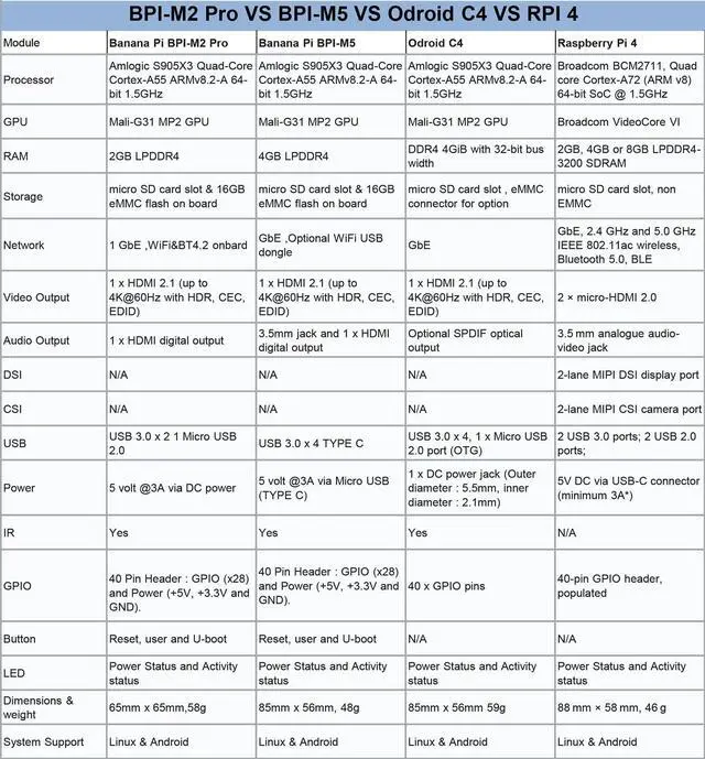 BPI-M2 Pro-CPU: Amlogic S905X3 Quad-Core Cortex-A55 ( 2.0 xx