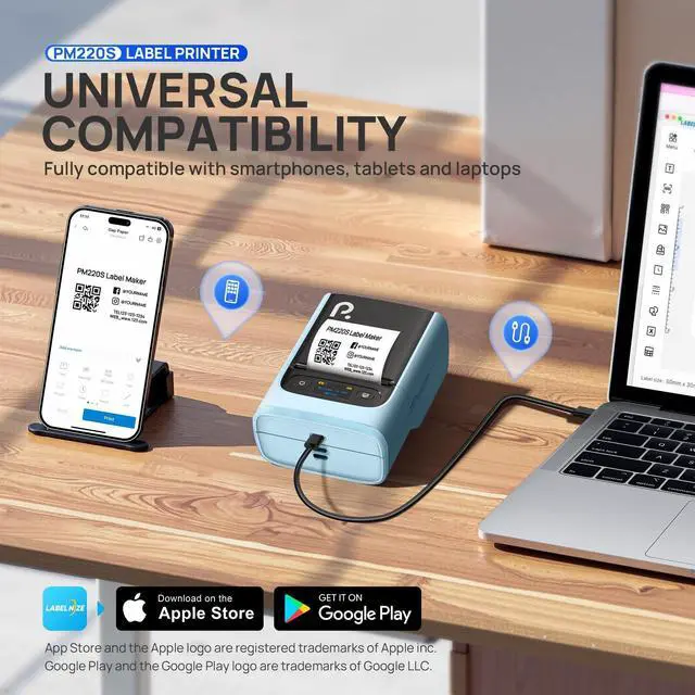 User-friendlyPM220S Bluetooth label maker seamlessly connects with iOS, Android, and PC. For mobile users, simply download the "Labelnize" app to print via Bluetooth.For PC, you need to download the driver and APP, please visit "polono.com" to obtain the PM220S label printer computer driver and APP. Notice: Please DO NOT connect directly via Bluetooth for all devices