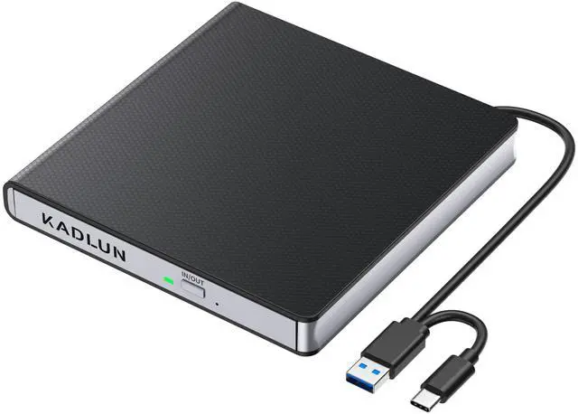 External CD/DVD Drive for Laptop MacbookSince most new laptops and desktop computers no longer come with built-in CD/DVD drives for reading/writing CDs and DVDs, The Kadlun latest external cd drive is a great solution. No extra drivers are required. Plug and Play. This external dvd drive have strong error correction, anti-slip, and quiet capabilities. Easily listen to music, watch movies, back up data or install systems. ^^ CD DVD Burner and ReaderThis is a full-featured external CD/DVD player/reader/writer/rewriter/burner/ripper. It supports CDR/RW, CD-ROM, DVDR/RW, DVD-ROM, DVD-RAM, VCD and SVCD.