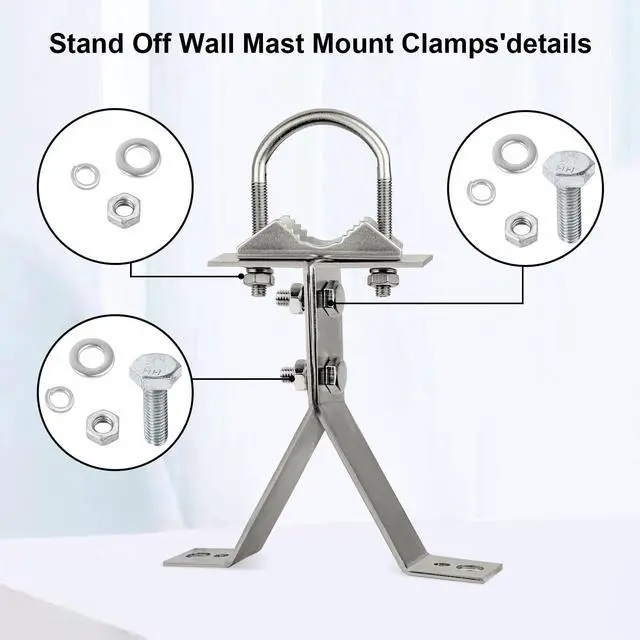 This antenna wall mount could support a long mast with a large antenna on top. ^^ The Antenna Wall Mount is easy to install. Setup is pretty easy for wood siding with lag bolts. It also comes with expansion bolts for concrete.