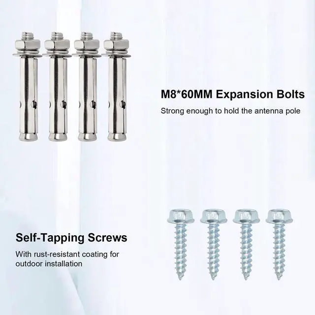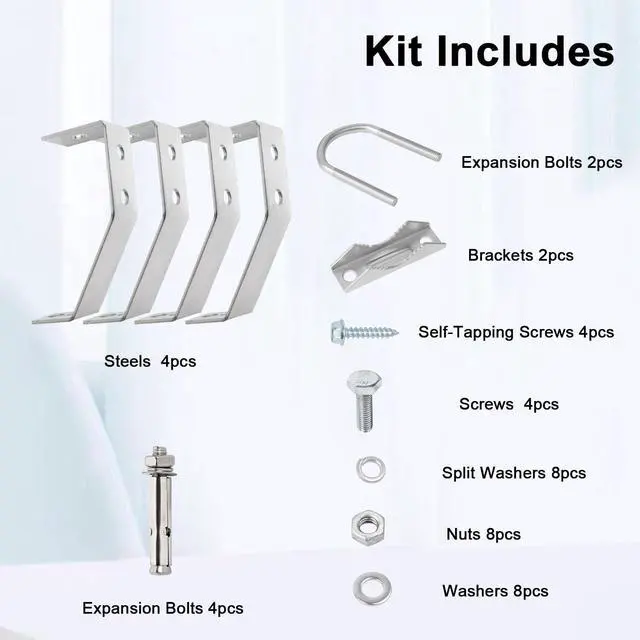 ^^ Kit includes: 1 pair(2-leg and 2-leg mount braces), including U-Bolt, V-Block Brackets, M8*60mm expansion bolts and lag bolts for reliable mount.