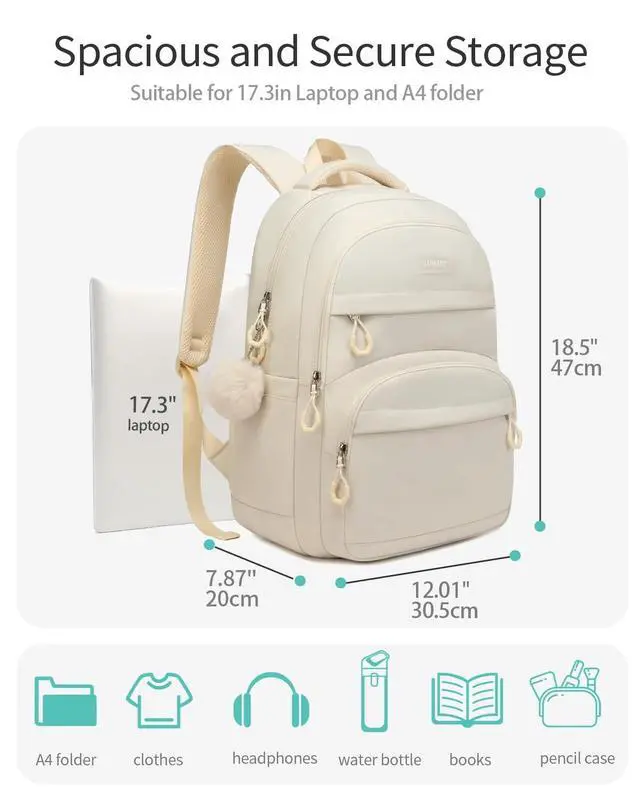 Organization Made Easy: Simple & convenient design, 15.6" or 17.3" laptop sleeve, 1 huge main compartment for A4 folders, books and lunch box, middle pocket with organizer, 4 front utility pockets, 2 side pockets and a back anti-theft pocket. With convenient USB charging hole. Whether your carrying textbooks, tech gadgets, or travel essentials everything has its place within this versatile pack.