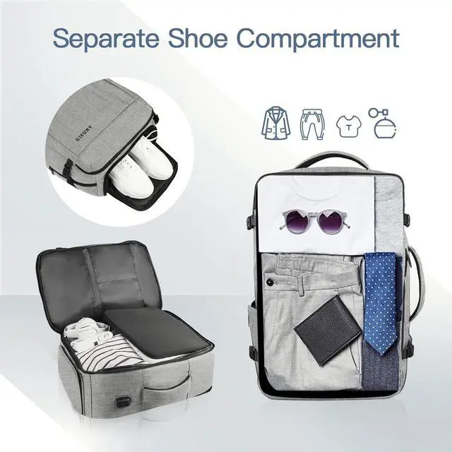 60L Max CapacityPack More, Stress LessExpandable design boosts storage up to 60L, solving the not enough space problem for 37 day trips. Easily fits outfits, shoes, jackets & travel essentials without overstuffing. Designed to fit overhead on major airlines. ^^ TSA 180 Fast CheckNo More Airport HassleThe lay-flat 180 laptop section speeds you through TSA without removing your device. Converts from backpack to suitcase mode, and the luggage strap keeps your hands free during long airport lines. ^^ Clean Packing SystemKeep Shoes SeparateBottom shoe compartment fits size 512 shoes and keeps dirty items separated from clean clothes.