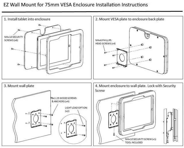 Material: Acrylic 8mm thickness, Six security screws (come with one screw driver) ^^ Support both Landscape and Portrait Display Modes. Total Screen Access For Full Touch Function, anti-theft security design