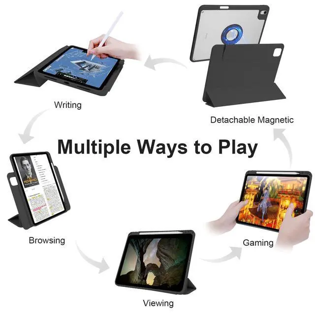 Note: It is Not compatible with any other devices. ^^ Detachable Magnetic StandFeaturing a robust magnetic cover that easily attaches to the back, transform your case into a stable stand with multiple viewing angles for both landscape and portrait modes. Perfect for gamingdetach it effortlessly whenever needed! ^^ Multi-angle AdjustmentThe smart tri-fold design enables you to switch between stable typing (60) and comfortable video-watching (30) modes. Enjoy hands-free convenience that enhances both productivity and leisure time. ^^ Premium MaterialsMade from top-quality waterproof PU leather on the outside and anti-scratch microfiber on the inside, this case features a double-layer back shell with a clear acrylic hardshell and PU leather lid. In order to improve the anti-drop performance of the protective shell, we used comprehensive anti-drop materials, so the product is relatively heavy.