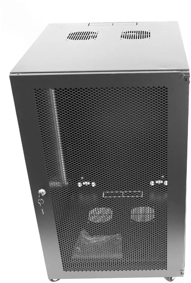 ^^ DESIGN AND VENTILATION: server rack cabinet removable door and side panels with vented top allowing airflowContains two fans, lockable Grid Gate not only boosts security but also facilitates easy monitoring of installed equipment and Provide heat dissipation.