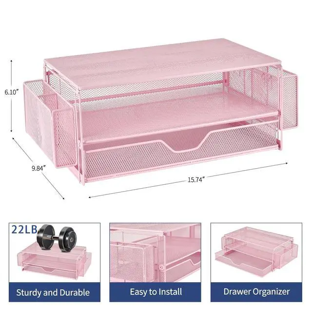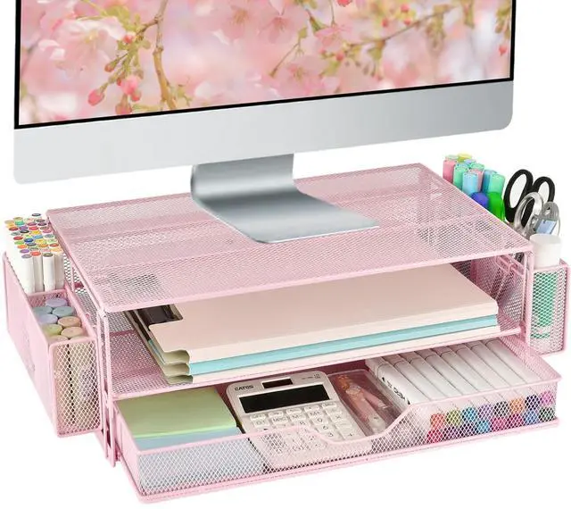 Space Saving: Our dual-tier desktop organizer with drawer and 2 pen holders stores office supplies and office desk accessories neatly. As a purpose monitor riser, it keeps your workspace organized, helping you focus and work efficiently ^^ Robust and