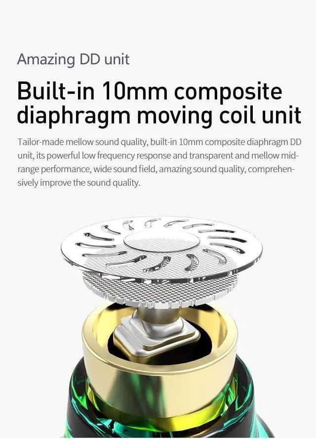 High-density PC Material DesignTranslucent resin material, bright streamer, full of beauty and technology! The cabinet cavity of KBEAR KS2 is made of imported high-density PC material which can well suppress the diffuse reflection of sound waves inside the cavity. Through the optimization of the internal cavity acoustic structure, the overall sound is more warm and charming, and the soft and mellow audio performance is reproduced as the real picture. sound like feeling extremely rich. ^^ 1BA+1DD Hybrid Driver In Ear Monitor (PU+biological diaphragm) Unitts powerful low frequency response and transparent and mellow midrange performance, wide sound field, shocking sound quality.