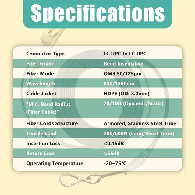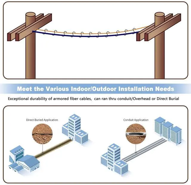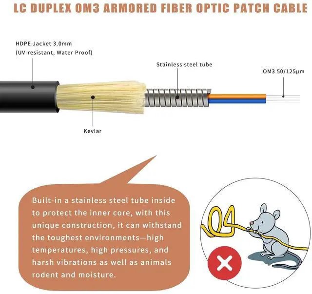 Duplex OM3 Multimode Armored Fiber Optic Patch Cable: Use for Indoor and outdoor applications ^^ Come with Fiber Optic Cable Pulling Eye to help you pull fiber cable through conduit ^^ Min.