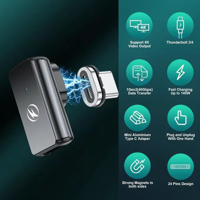 (Warm Tips: please confirm your USB C port on host and USB C cable are support 8K resolution) ^^ [Ultra-Strong Magnetic] The small USB C magnetic adapter with powerful magnet to ensure you never worry about disconnecting, should stop long-term wear on the USB C port that comes with daily charging. quickly and easily, protecting your USB C devices from dropping off. It is slim and small, and wont block the near port. ^^ [Compatibility] The USB C magnetic adapter perfect for MacBook Pro Mac Air, Samsung Galaxy Book, Dell XPS, Lenovo ThinkPad, iPad Pro 2018-2020, iPad Air 2020, Switch, cellphones and other USB C ports device. ^^ [You Can Get] 2-Pack 24pins magnetic USB C charging adapter straight and 12month warranty with friendly customer service.
