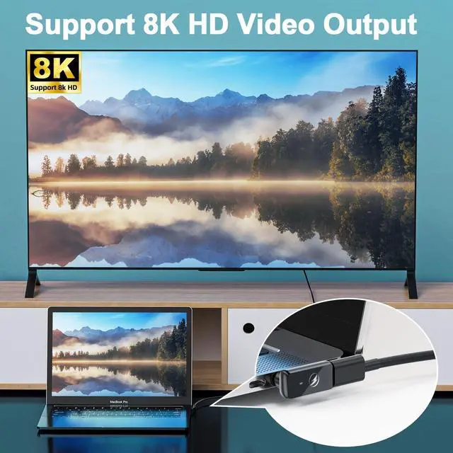 (Warm tips: 40Gbps data transfer speed depends on USB devices and cables are supported) ^^ [8K@60Hz Video Output] Extend your screen with HanCenDa USB magnetic adapter to achieve 8K@60Hz to HDTV, monitor or projector. You could not only enjoy movies with your family on a bigger screen, but also make a vivid presentation in a meeting.