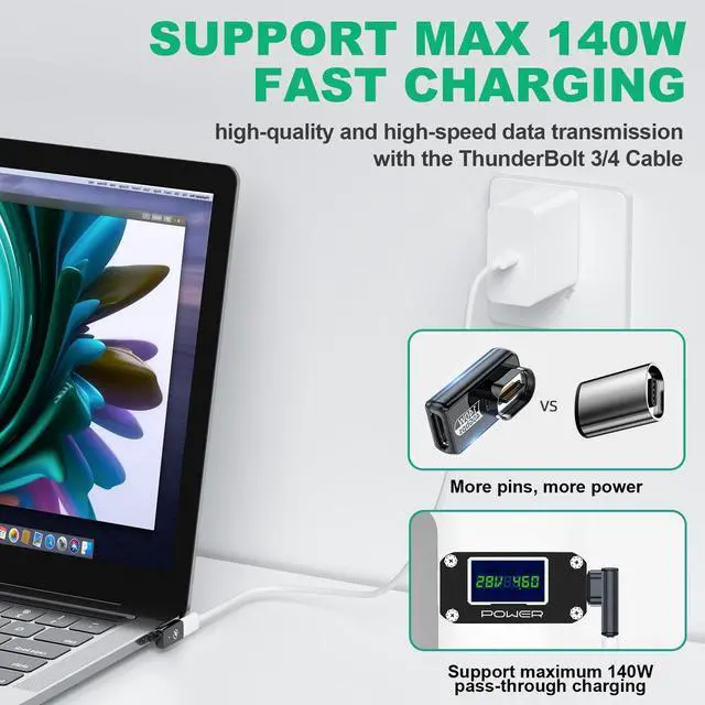 [Upgrade 140W Fast Charging] The USB Type C magnetic adapter can achieves 5V/3A-28V/5A, 140W maximum USB power delivery, PD charging connector plug allows you to fast and easily charge MacBook or other devices with USB C ports, providing your USB C devices with the fastest possible charging speed. ^^ [ 40Gbps Data Transfer] The USB C magnetic charging adapter meets 40Gbps data transfer. Your could transfer HD movies, music and more large files in just seconds.