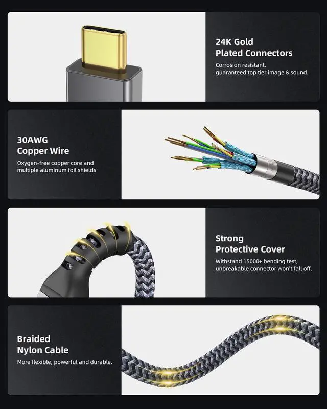 Safe Charging: Integrated E-Marker chip ensures reliable power negotiation up to 240W (device-dependent). Fully compatible with 100W+ laptops and everyday USB-C devices without overheating or voltage issues ^^