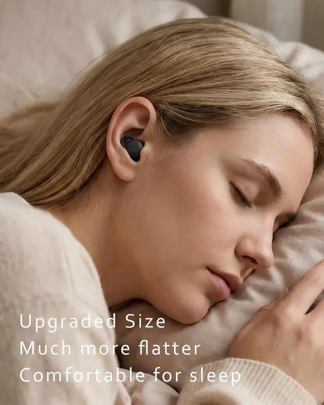 These headsets are designed for seamless, uninterrupted sleep, helping you fall asleep faster and stay asleep longer without any disruptions ^^ Super Snug & Secure Fit Equipped with 3-size soft silicone tips, these sleeping buds stay in place comfortably, providing stability and noise blocking even without music. Whether you're sleeping or on the move, these flat buds ensure a secure fit for all your activities ^^ Effective Noise Blocking Earbuds Ergonomically designed for daily use, these soft earbuds create a gentle seal, blocking up to 24dB of outside noise. Ideal for sleep or focus, these earbuds offer a peaceful environment without Active Noise Cancelling (ANC), ensuring a natural listening experience ^^ Stable Connection Featuring true wireless Bluetooth 5.3, sleeping earphones are compatible with Apple and Android devices, ensuring a stable connection for streaming music, podcasts, or making calls.
