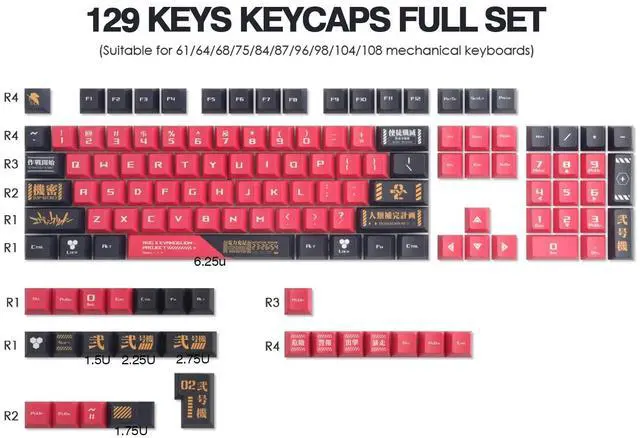 Widely Compatible KeycapsMechanical keycaps consist of 129 keys, suitable for 61/64/68/75/84/87/96/98/104/108 mechanical and optical keyboards, and any "+" Key switches, ideal for custom mechanical keyboard options.