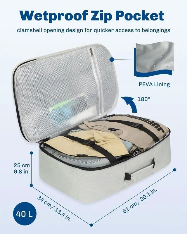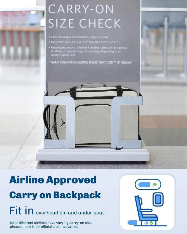 Flight Approved Sizemade of water repellent polyester and 210D polyester lining, the carry on bag fits the allowed maximum size of most IATA flights and can also fit in the overhead compartment, 40L carry on backpack Approx.