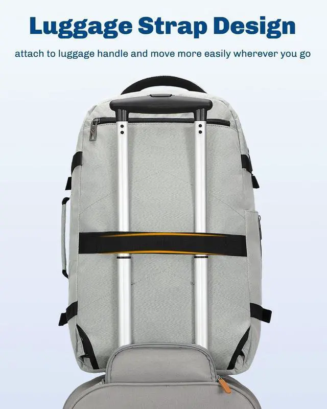 Weight: 2.2 lbs/ 1 kg ^^ Pass Through Luggage Strapcarry on backpack is designed with an added back trolley strap for more convenient, you can quicker attach the travel cabin backpack to the luggage handle and move more easily around the airport or wherever you go; 4 compression straps help eliminate extra backpack space, making the carry on bag more compact, it can also relieve the pressure on the zippers, so if travel with a partially packed bag, you can preventing the contents from sloshing around ^^ Wet Compartmenttravel backpack for men and women features a new PEVA-lined waterproof compartment instead of a mesh zip compartment, provides a dedicated place to put away your wet clothes or toiletry items, from damp towel to beach flip flops ^^ Padded Sleeve for 15.6 -inchThe middle zip compartment is built with a padded laptop sleeve that fits up to a 15.6 -inch and a padded tablet sleeve that fits up to a 10.5 -inch; backpack for travelling designed with front zip compartment can organize you last minutes accessories, tickets or brochure, inside with 3 slip pockets, keep essetials in place and at the ready, main compartment with fasten buckle straps which is roomy enough to pack travel belongings, from organizer cubes to toiletry bag ^^ Comfortable to Carryhide-away contoured travel weekend backpack straps are well padded with air mesh, can carry it comfortably as a carry on backpack or also can easy convert it into a travel duffel bag; provide 4 carrying options for travelers' multiple alternatives; there is 1 sternum strap that adjusts lengthwise and slides up and down the shoulder straps, and 1 adjustable waist strap designs for stabilization and carry comfort ^^ Versatile for Occasionspack it as travel backpack when you plan to have a weekend out or overnight trip, tuck the laptop and documents quickly for next day business visit, slip travel backpack over the upright handle of wheeled luggage seamless when you are tired to carry it on your back, a multiple functional travel must have for women and men