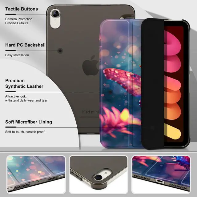 Generation 2021 (Model: A2567, A2568, A2569), this case offers a precise fit for the 8.3 -inch Liquid Retina Display. Please confirm your iPad model on the back of the device before purchase. It is not compatible with any other iPad models ^^ Magnetic protective cover automatically wakes iPad mini 7th/6th Gen when open and hibernates when closed to conserve power. Tri-fold stand provides the perfect viewing and typing angle ^^ The translucent frosted back cover lets you see the Apple icon in your favorite color, while the front cover combines a premium PU exterior, microfiber lining, and soft TPU for excellent scratch, impact, and drop protection to ensure long-lasting protection for iPad mini 7th/6th Gen ^^ Precise cutouts for all ports and buttons make it easy to access all the features of iPad without having to remove the case too often ^^ Ultra-thin design offers robust protection without adding unnecessary bulk, preserving your iPad sleek look and portability