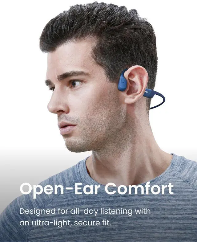 Open-Ear Comfort - OpenRuns innovative design features a featherweight, wraparound frame and wireless, open-ear fit for comfortable, earbud-free listening. Includes Shokz headband. ^^ Safety & Connection - Stay aware and motivated through any workout with our 8th generation bone conduction technology. OpenRun delivers quality audio while leaving your eardrums open to surroundings for ultimate safety. ^^ IP67 Waterproof Rated - A rugged, sweat-resistant design built to withstand your most intense workouts. Completely sweat and waterproof for workouts, fitness and running. Moisture detection alert included for safe charging. (Not suitable for swimming.
