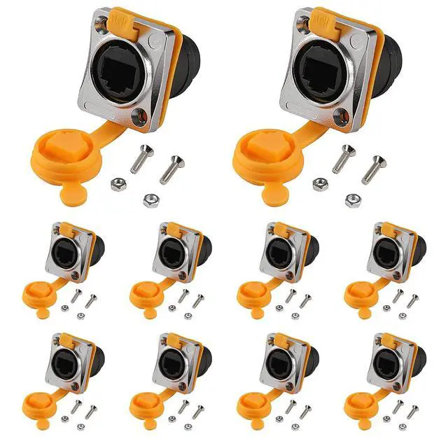 EXTENSION CORDPENGLIN RJ45 Connector is an ideal for extending an ethernet connection by connecting 2 short network cables together. Using this can save cost and time compared with replacing a network with insufficient length. ^^ DURABLE QUALITYZinc alloy material, scratch resistance, superior construction for reliable connectivity of the RJ45 extender. ^^ NO LAGPlug and play and enjoy high-speed data transmission with this RJ45 CAT5e panel mount ethernet connector. ^^ CAN BE INSTALLEDStandard D-shaped mounting hole, you can choose to fix the RJ45 adapter or not, which provides great convenience in engineering use.