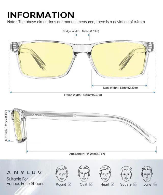 ^^ Crystal Clear Vision: ANYLUV mens blue light glasses feature low-color-distortion lenses that ensure minimal color alteration, delivering a clear, vibrant visual experience without compromising eye protectionideal for work and leisure. ^^ All-Day