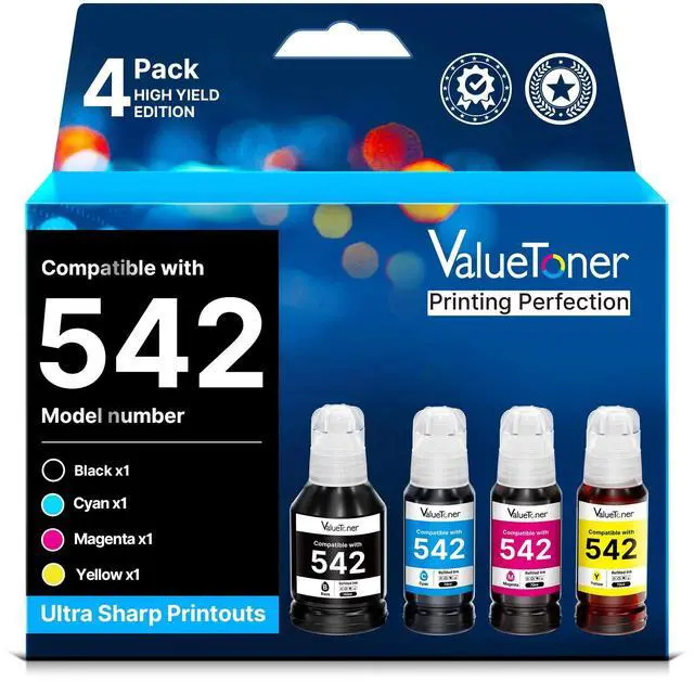 ^^ Extra-large Page Yield: High capacity ink bottle, 1 bottles of 140ml black ink can totally print 7, 500 pages, 7, 500 pages per black 542 t542 ink black, & 6, 000 pages per 542 color ink cartridges, 3 bottles of 70ml color ink. ^^ 4 Pack t542 542 ink for epson ink 542 refill bottles work with ecotank printers undergoes a strict quality testing procedure to ensure quality and compatibility with your printer.