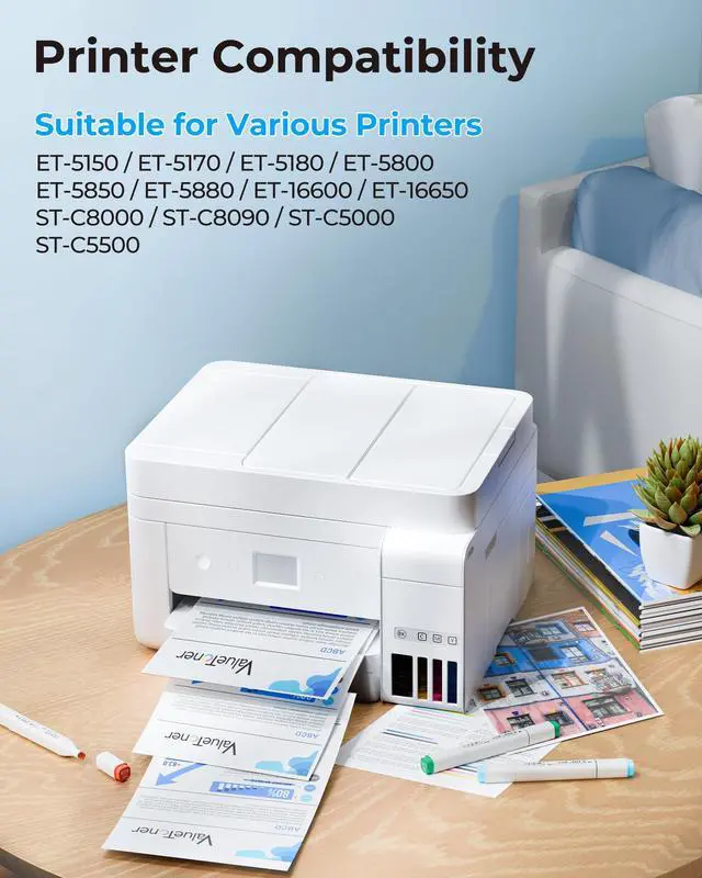 Printer Compatibility: Remanufactured For Epson 542 ink refill bottles work for Epson ET-5150, ET-5170, ET-5180, ET-5800, ET-5850, ET-5880, ET-16600, ET-16650, ST-C8000, ST-C8090, ST-C5000, ST-C5500 printer ^^