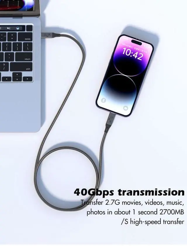 LIGHTENING-FAST DATA TRANSFER: With 40 Gbps data transfer rate, you can move movies, music, and large files between your devices in seconds. 8K at 60Hz or 4K at 144Hz. The USB-4 Cable is designed to work flawlessly with virtually any USB-C device, including phones, tablets, and laptops. Its the perfect accessory for anyone looking to enhance their connectivity options. COMPATIBLE WITH THE FOLLOWING DEVICES (*Check that it takes USB-C)iPad Pro 12.9 (5th generation), iPad Pro 12.9 (4th generation), iPad Pro 12.9 (3rd generation), iPad Pro 12.9 (2nd generation) iPad Air (4th generation), iPad mini (6th generation) MacBook Pro 14 (2021) MacBook Pro (M1, 2020)MacBook Pro 15.4 (2019/2018/2017/2016)MacBook Pro 13.3 (2020/2019/2018/2017/2016)MacBook Air (2020/2019/2018)MacBook Pro 16 (2021) Samsung Galaxy Note 10+/10/9/8Samsung Galaxy S21/S21+/S20/S10+/S10e/S10/S9+/S9Google Pixel 3/4/5/6Lenovo Yoga 14sLenovo ThinkPad X1 SeriesHP Spectre SeriesMade with care and with attention to quality and function. The brand names and logos used in this listings are the registered trademarks of their respective owners. Any use of a brand name or model designation for this product is made solely for purposes of demonstrating compatibility.