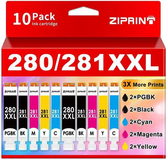 Package includes: ZIPRINT 280 281 ink cartridges XXL - contains 2*PGBK, 2*Black, 2*Cyan, 2*Yellow, 2*Magenta (10 cartridges total). Perfect compatible with Canon 280/281 ink cartridges ^^