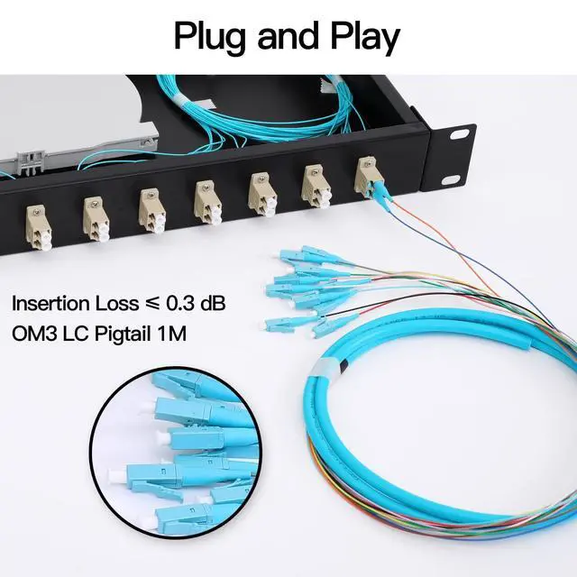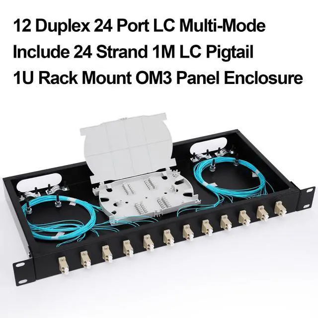 Rack Mount LC-OM3 Kit 24 Core LGX Panel Fiber Enclosure - Set of Accessories is Complete Include 2Pcs Splice Trays 24 Strand LC MultiMode Pigtail + 12 Duplex LC Fiber Couplers Optical is Configured and Fiber Pigtail cables are inserted neatly. Fits 19 inch Rack Cabinets-Easy to Use1. Fiber termination box features a completely secured fiber enclosure space. No other fiber optic box blends this well into a wiring closet and provides this level of security in a wall mount fiber enclosure. Fiber enclosure wall mount solutions need to be flexible and allow for all types of fiber termination.