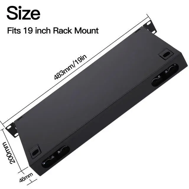 Minimum Bend Radius: 15mm. Parameters1. Dimension 483mm*200mm*46mm, Can be mounted vertically or horizontally; The kit provides optimum protection, keeps your fiber distribution organized when space is limited and maintains the integrity of your connections.