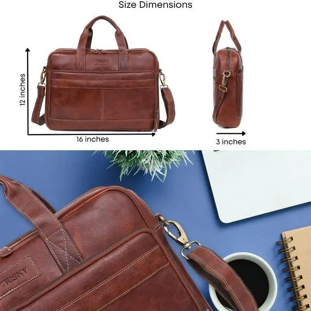 Spacious Leather Laptop Bag: This leather bag is crafted to accommodate laptops up to 16 inches, making it a reliable leather laptop bag satchel for men and women alike, offering both style and functionality for daily commutes.