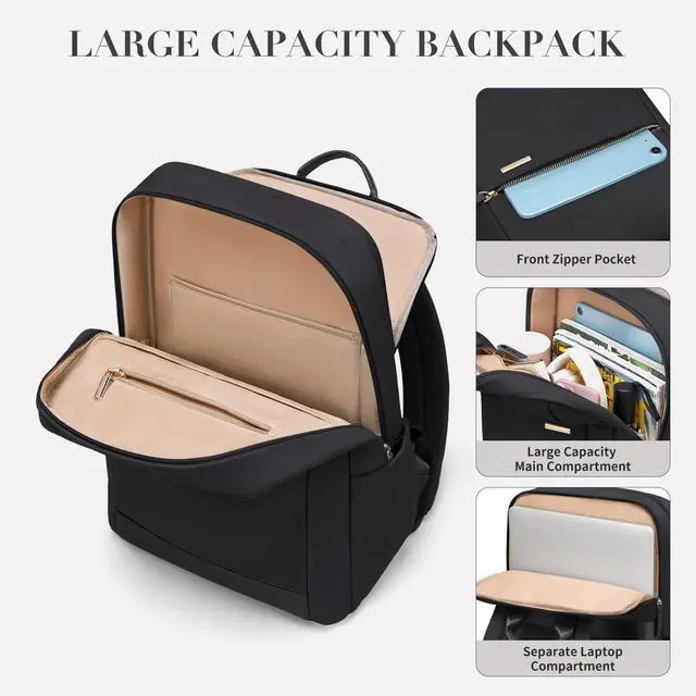 LARGE CAPACITY: Wide Open Teacher Nurse Backpack for women Made of high quality water resistant nylon fabric, metal double-way zipper pulls ensure extreme durability. Work backpack has a separate laptop compartment that it could hold 15.6 inch computer and protect laptop from moving; Casual daypack main compartment has enough storage space to hold your books or daily necessities ^^