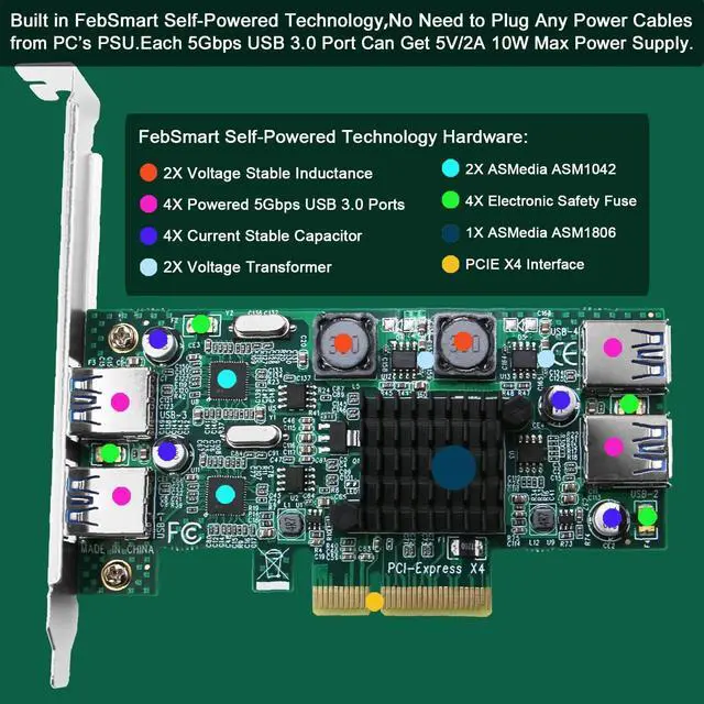 FebSmart add 4X electronic safety fuse and 4X voltage stable capacitor and 2X voltage stable inductance on the USB 3.0 expansion card, will protect users data and USB devices, make sure safe connection. ^^ 4.