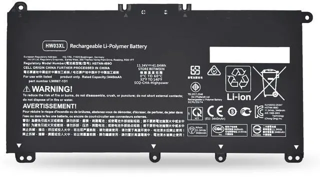 Compatible Part Numbers: - HP HSTNN-IB90 HSTNN-IB9O HSTNN-LB8U HSTNN-OB2A HW03XL HWO3XL L96887-1D1 L96887-421 L96887-AC1 L97300-005 ^^ Certified security- EMAKS High-quality bateria have Multiple Safety Protections, including Short Circuit, Overheating and Overcharge Protection. Built in Smart Control Chip Conveniently offers Quicker Charging, Lower Power Consumption and Longer Discharge Time. Every one of Our Replacement Notebook Batteries Have Undergone Comprehensive Quality Testing During the Manufacturing and Assembly Process.
