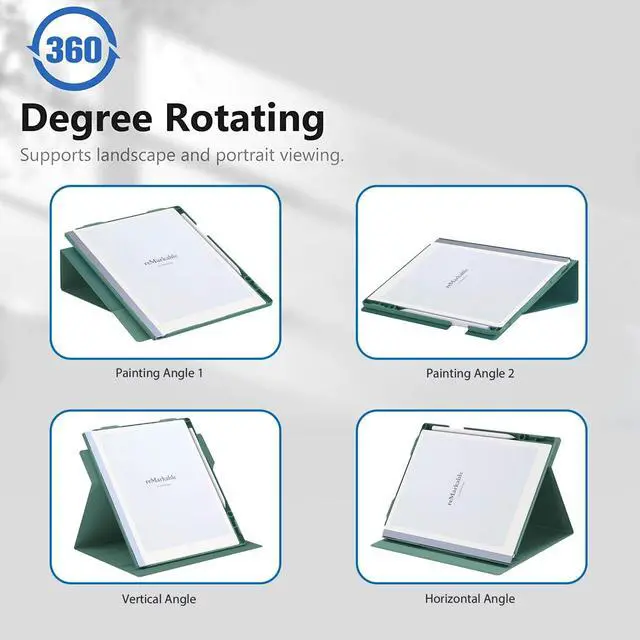 Stand Design: Remarkable 2 cover is equipped with a unique rotating stand case that can be rotated to 360 degree angle to meet your multiple angle needs, suitable for writing, web browsing, reading and many other occasions.