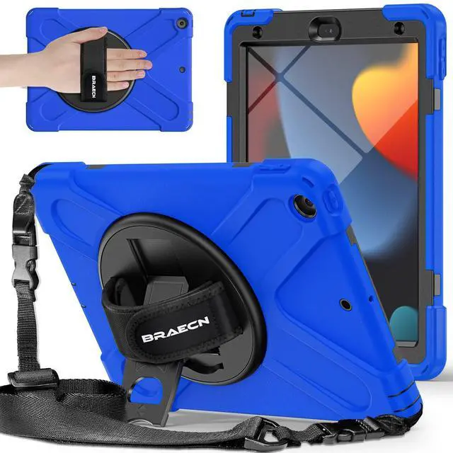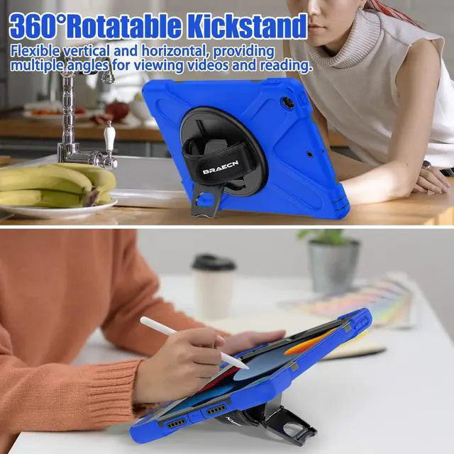 Rotating Hand Strap & Stand: The Rugged iPad 9th/8th/7th Gen Case 10.2 inch built-in 360 Rotating Hand Strap & Kickstand on the back, flexible in vertical&horizontal any other angles ideal for watching video, reading or teaching, maximinzely free your hand. Stretchable handle grip, perfectly suitable use for all size of hands, adults, students, child ^^