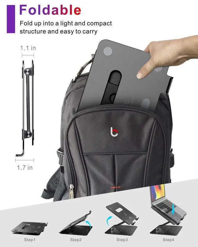 Ventilated Cooling & Foldable: Macbook air stand with aluminum alloy material on top can absorb and discharge heat at ease. What's more laptop riser has heat vent design increase natural airflow help you laptop cooldown, hence running at optimal performance longer, and even prolonging the life of your laptop. This computer stand can easily fold and fit into your bag and laptop case. ^^ Wide Compatibility & Multi -