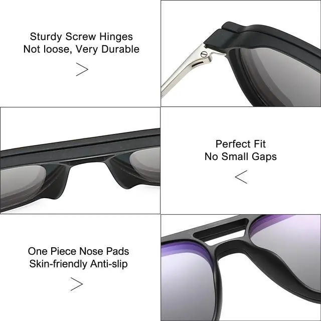 UV400 protective coating blocks UVA, UVB, and UVC rays with a wavelength of 400nm, restoring true colors, eliminating reflected or scattered light, enhancing contrast, and preventing glare for greater eye comfort. Tac lenses are scratch-resistant, lightweight, and durable. ^^ Comfortable WearingUse of high-quality frame materials, reduce the burden on the bridge of the nose and ears, bring the ultimate comfort wearing experience. Universal size fits the most of face shapes. Hinges uses the quality combo kit, effectively prevent the screws off, ensure opening and closing of the temple.