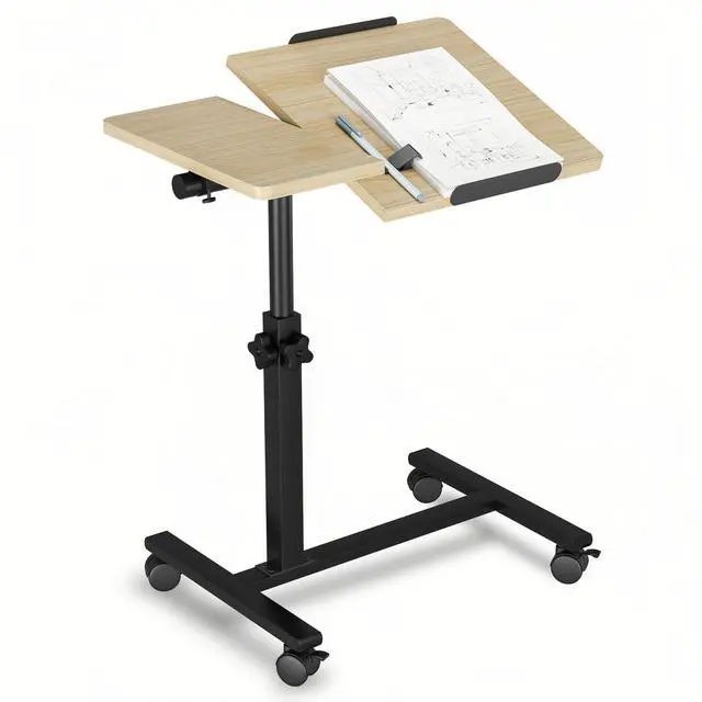 STURDY CONSTRUCTION& CLEANABLEMade of thick steel and MDF wood, this rolling bed table has a 25kg/50 LBS weight capacity. Keyboard tray and mouse tray can be tilted up to 180, they can also be switched for left-handed users. The overbed table desktop is wear-resistant and water-proof and you can clean. ^^ HEIGHT ADJUSTABLE&TILTABLEOverbed table is easy to adjust height from 23.2" to 36". This laptop desk can be rotated horizontally and tilted, it applies durable manual stepless height adjustment system. After turning the two knobs on the center rod counterclockwise, freely adjust the desktop to the desired height then turn the knob clockwise to lock the height.