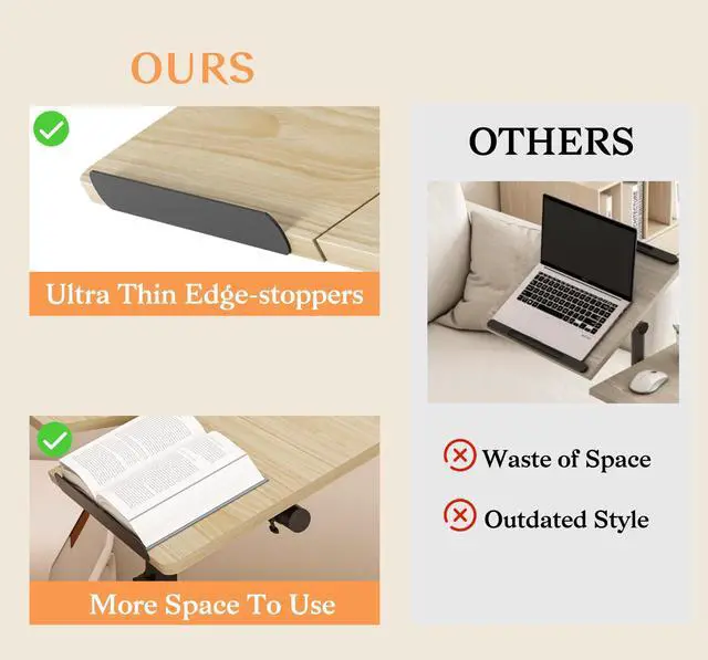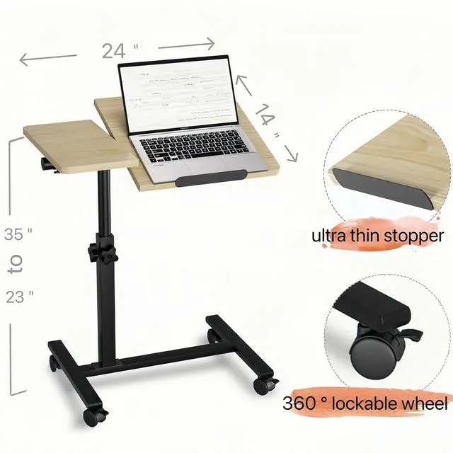 ^^ FLEXIBLE& MOBILE COMPUTER WORKSTATIONWe used larger wheels, Includes locked wheels that will be used as a night stand to secure it at a bedside, a sofa, a recliner or with a wheelchair, Large wheels make this moblie bed side table moving smoother. ^^ OPTIMIZED OFFICAL FUNCTIONSThe corners of the hospital bed table has been rounded to avoid injury to u! We have optimized the length of the stopper to better fit your workflow during work. ^^ EASY TO ASSEMBLEWe have prepared spare parts along with the box, detailed the installation manual and prepared the installation video!