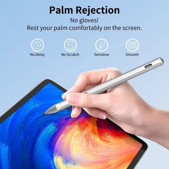 Note: Tilt sensitivity compatibility depends on the application and pen brush. ^^ USB-C Ultra Fast Charging and Intelligent Power Management Avoid the trouble and waste of disposable batteries. It can be used for about 80 hours after being charged for 20 minutes. Fully charged in 1 hour, standby for 365 days. With the Smart power management design, it will switch to power-saving mode after 10-minutes of idle. Pressing any button can wake you up from the power-saving mode. ^^ Palm Rejection & Magnetic DesignThe palm rejection feature effectively prevents your hand from interfering with your work, allowing you to comfortably rest your hand on the screen while creating. The magnetic design enables the stylus to be securely attached to the tablet, making it more convenient to store and locate while in use. ^^ Easy to UseThis stylus pen doesn't require any special software or Bluetooth connection in order, just press the key to use. With shortcut keys eraser and right mouse button functions.